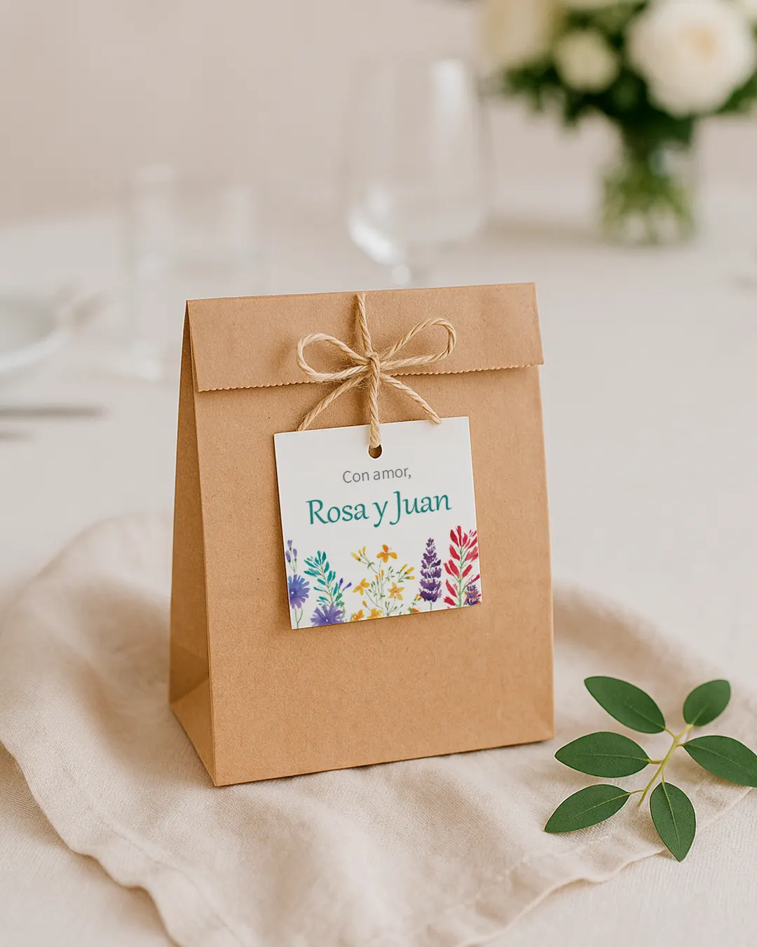 Todo el conjunto mantiene la misma estética de ilustración en acuarela pintada a mano, logrando una identidad visual coherente en toda la decoración de vuestra boda.